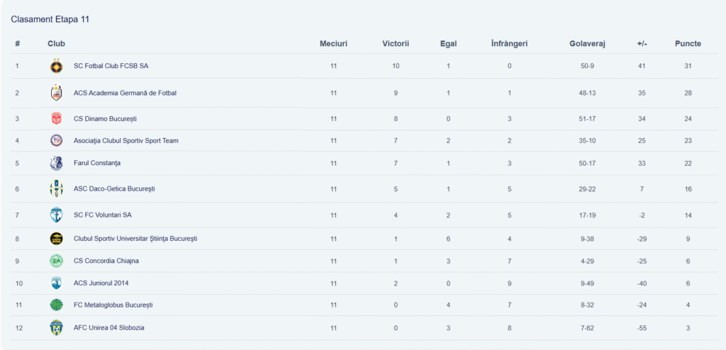 Sâmbătă 21 noiembrie 2025 la AMFB ACS Dacogetica & Best team scor 8-0